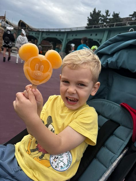 We ended the day watching the fireworks, and it was impossible not to tear up. We know these moments are brief, as running around Disney parks with young kids exists in a very small window of life. Standing there tired, legs aching, and slightly sick from too much sugar and mediocre food, I watched fireworks burst over dancing Mickey and felt the weight of time in a way that caught me off guard.
