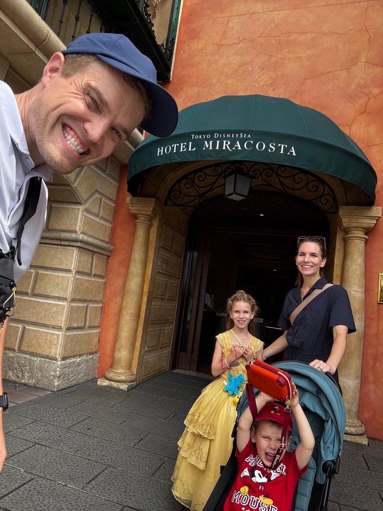 The kids, of course, noticed none of that. Daxton still talks about DisneySea as one of the highlights of his “big trip”. And in the way that Disney always does, the magic went straight past the logistics and landed somewhere much deeper in their brains. There really is something timeless in how Disney connects with kids, and it was fully alive in both of ours.